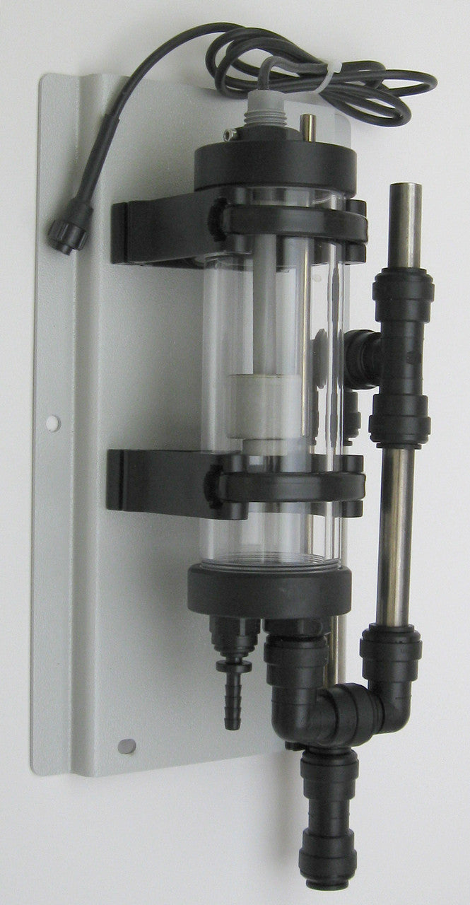 The Fast Flow Reservoir (FFR) provides an atmospheric pressure sample point for the CA6 Colorimetric Analyzer. It is an overflow device; the pressurized sample is throttled down with a user supplied valve to supply a slight overflow of sample to the FFR. No fast flow reservoir is needed if sampling from a tank or pond.
